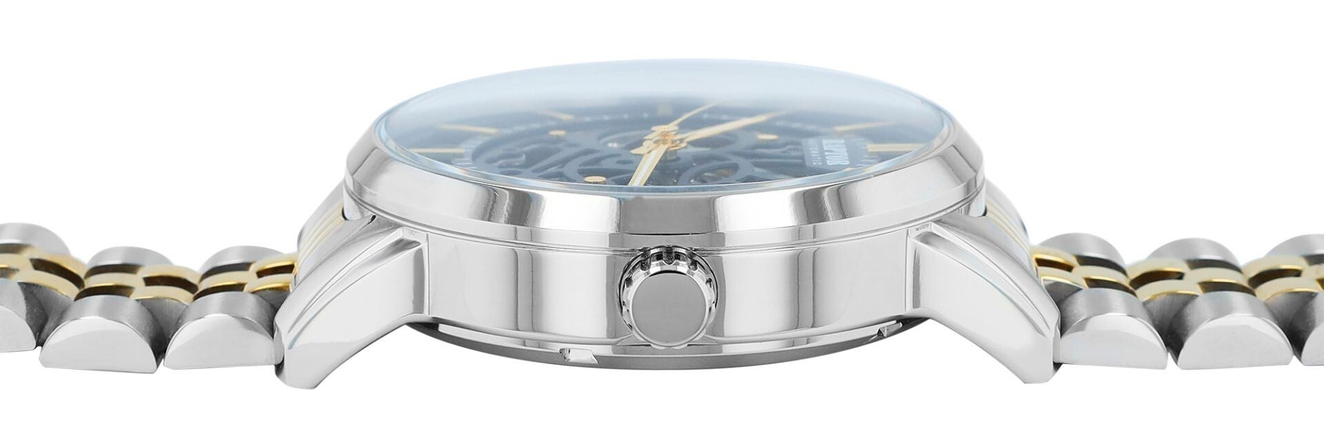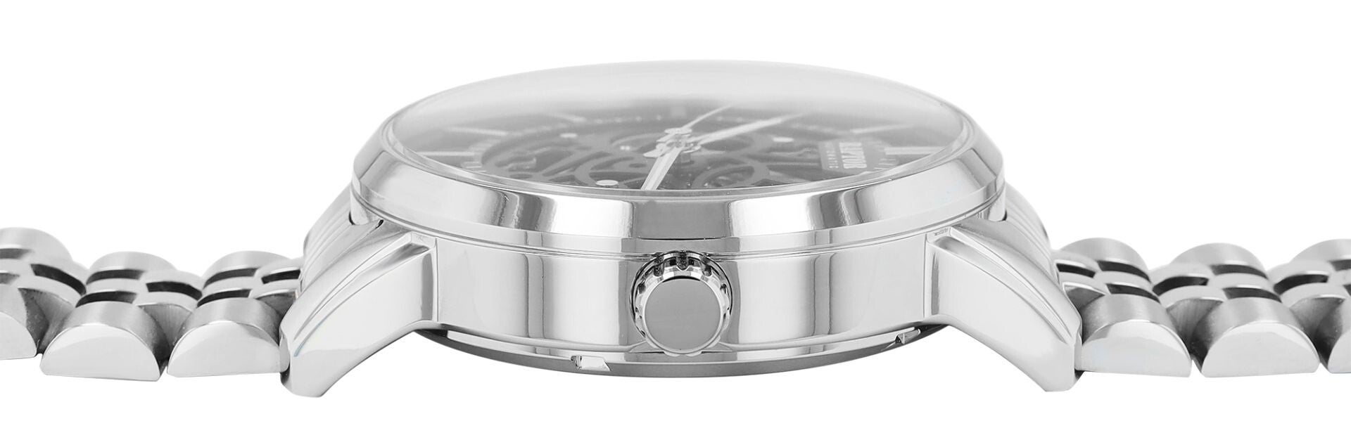 Abgerundet wird die Uhr durch ein hochwertiges Edelstahl-Gliederarmband, das mit einem stilvollen Kontrast aus gebürsteten und polierten Elementen überzeugt. Mit einer Stegbreite von 22 mm und einer Länge von 25 cm bietet es sicheren Halt und hohen Tragekomfort.
