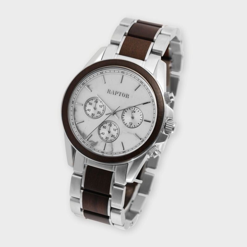 Raptor Herrenchronograph "Chiko" aus Edelstahl und schwarzem Sandelholz RA20369-001