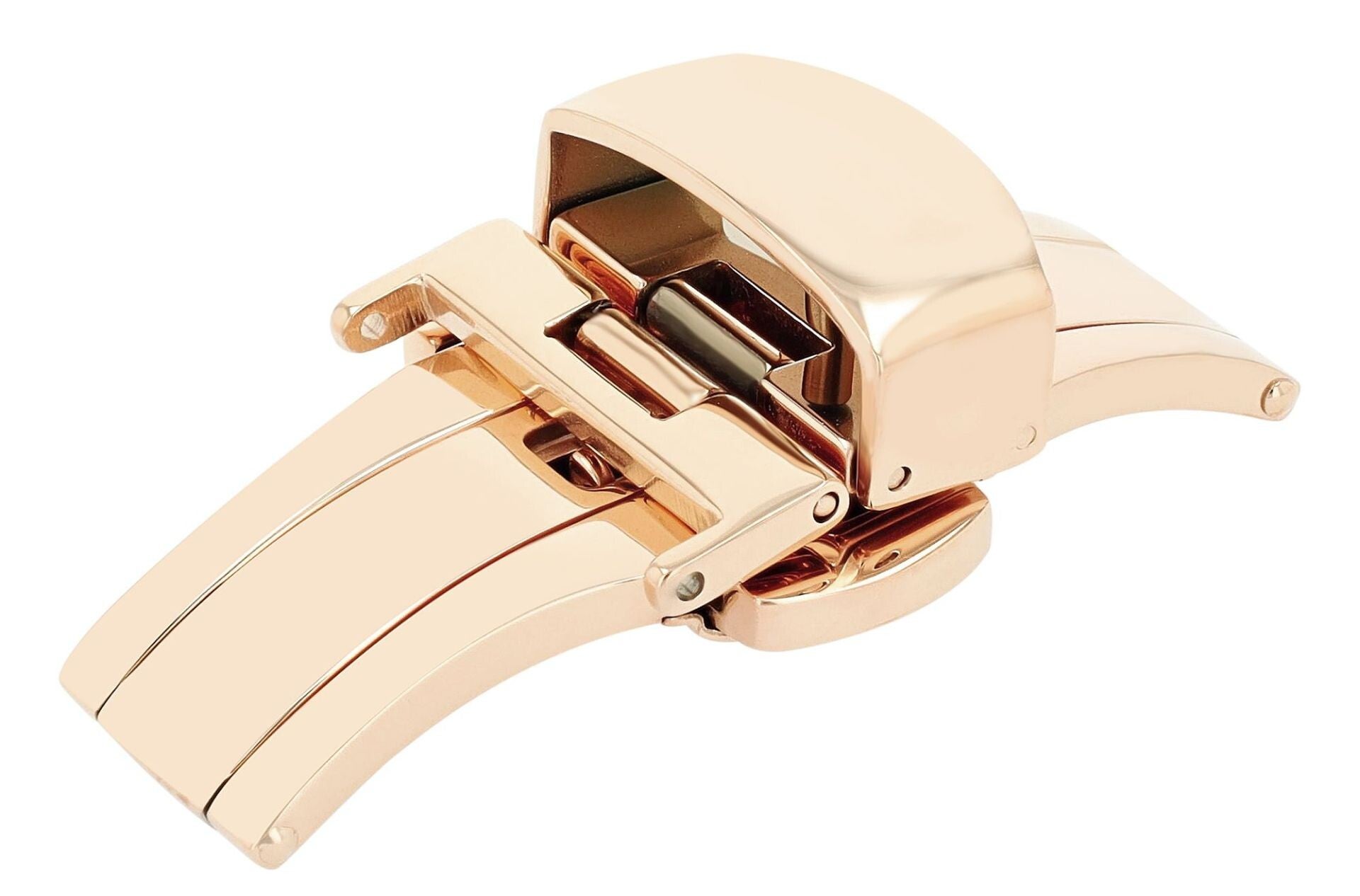 Die Steinmeister Butterflyschließe aus hochwertigem Edelstahl verbindet Langlebigkeit, Sicherheit und stilvolle goldfarbene Eleganz. Mit einem Schließenanstoß von 16 mm bietet sie eine zuverlässige Befestigung für Ihr Uhrenarmband und sorgt gleichzeitig für höchsten Tragekomfort. Die polierte Oberfläche verleiht der Schließe ein edles Erscheinungsbild, während das praktische Butterfly-Design ein einfaches Öffnen und Schließen ermöglicht. Diese Schließe ist eine vielseitige Option für verschiedenste Uhrenbänder und vereint Funktionalität mit zeitloser Ästhetik.