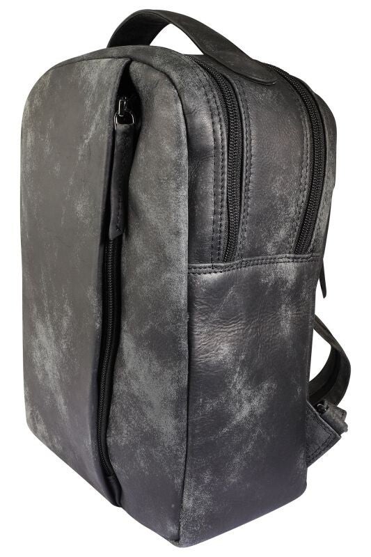 Leonardo Verrelli, Echtleder Rucksack/Sling Bag, Reißverschluss, verstellbare Riemen, grau/schwarz 3900066-001