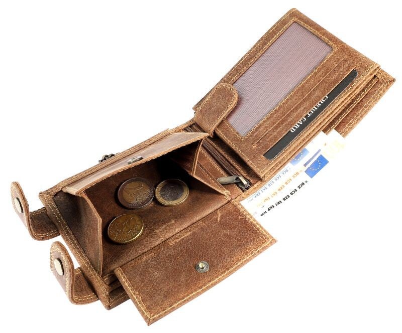 Die Leonardo Verrelli Biker-Geldbörse im Querformat vereint markantes Design, robuste Qualität und funktionale Aufteilung. Gefertigt aus 100% echtem Büffelleder im charakteristischen Hunter-Look, begeistert sie mit einem einzigartigen Vintage-Charakter, der durch die Nutzung eine individuelle Patina entwickelt und jedes Stück zu einem Unikat macht.