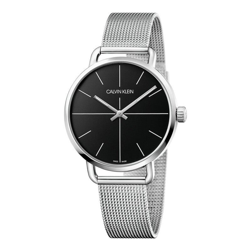 #CalvinKlein, #EvenK7B21121, #Herrenuhr, #Edelstahluhr, #MinimalistischesDesign, #Eleganz, #SilberfarbeneUhr, #Quarzuhr, #SchwarzesZifferblatt, #DesignerUhr