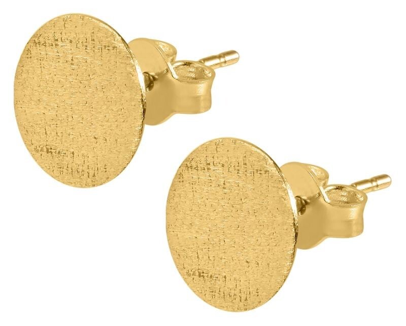 Der praktische Steckverschluss mit Flügelschraube sorgt für sicheren Halt und hohen Tragekomfort – perfekt geeignet für den täglichen Gebrauch oder besondere Anlässe. Mit ihrem Durchmesser von 10 mm und der feinen Materialstärke von 1 mm sind die Ohrstecker Irem ein Ausdruck von schlichter Raffinesse und goldener Eleganz. Auch als Geschenkidee ideal geeignet, um Freude und Stil zu verschenken.