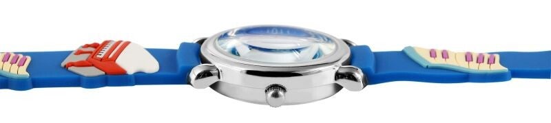 Das präzise Quarzuhrwerk PC21 sorgt für zuverlässige Zeitmessung, während der Edelstahlboden Stabilität und Langlebigkeit garantiert. Diese analoge Kinderuhr vereint fröhliches Design mit Qualität – ein tolles Geschenk für Kinder, die Musik und Farbe lieben.