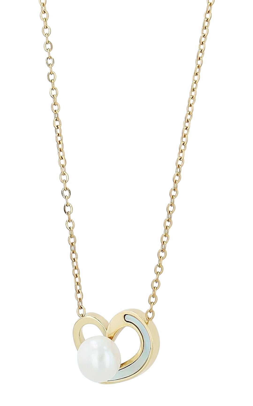 "Eimy" Edelstahlkette mit Anhänger und Süßwasserperle Herz, 42,5 + 5 cm 5010666-001