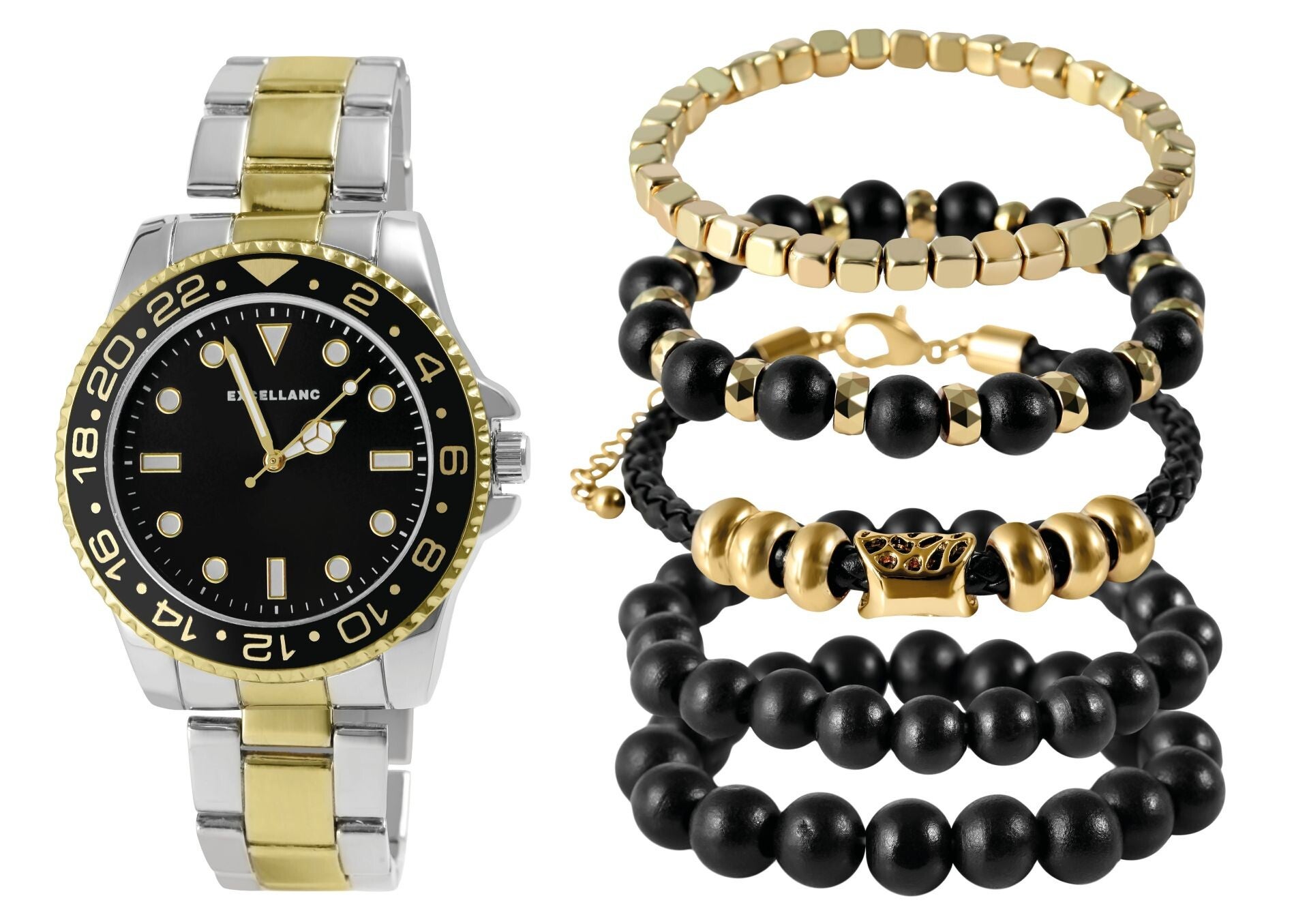 Excellanc Geschenkset Herrenarmbanduhr und fünf Armbänder, schwarz 2800091-002