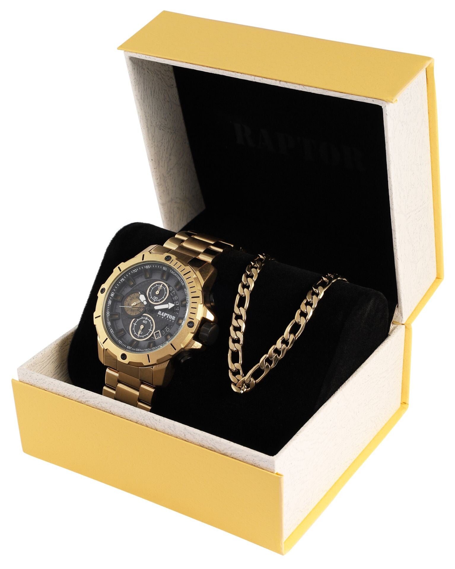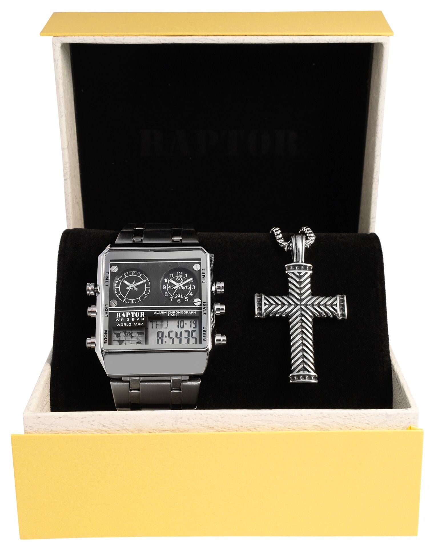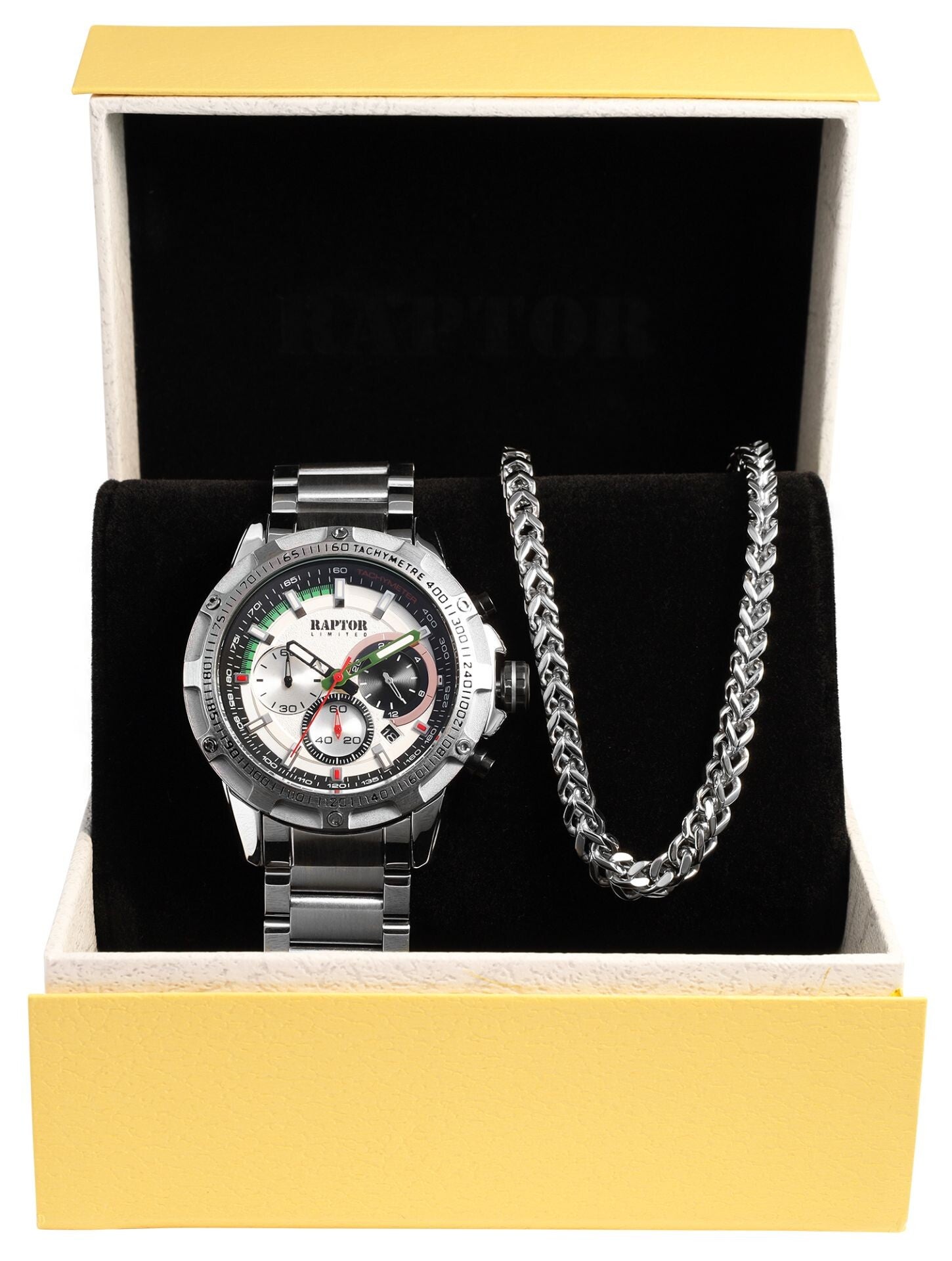 Raptor Herren Geschenkset – Herrenuhr mit Silikonband & Edelstahl-/Echtlederarmband