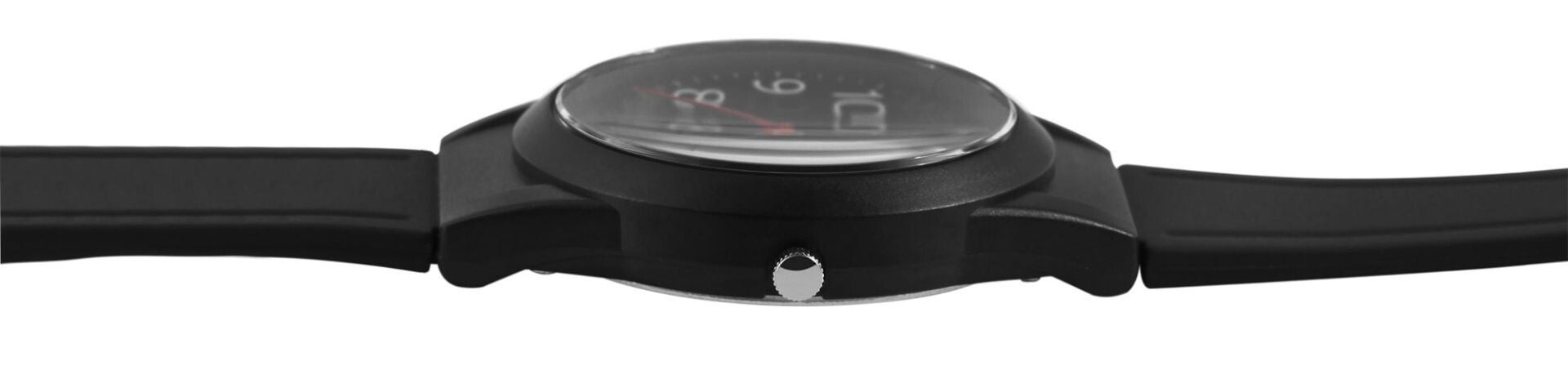 Das leichte Kunststoffgehäuse mit einem Durchmesser von 38 mm verleiht der Sportuhr eine moderne Optik und hohen Tragekomfort. Ergänzt wird das Design durch ein schwarzes Silikonarmband, das sich angenehm am Handgelenk anpasst und mit einer silberfarbenen Dornschließe sicher verschließen lässt. Mit einer Wasserdichtigkeit von 10 bar eignet sich diese Q&Q Uhr ideal für Alltag, Freizeit und sportliche Aktivitäten.