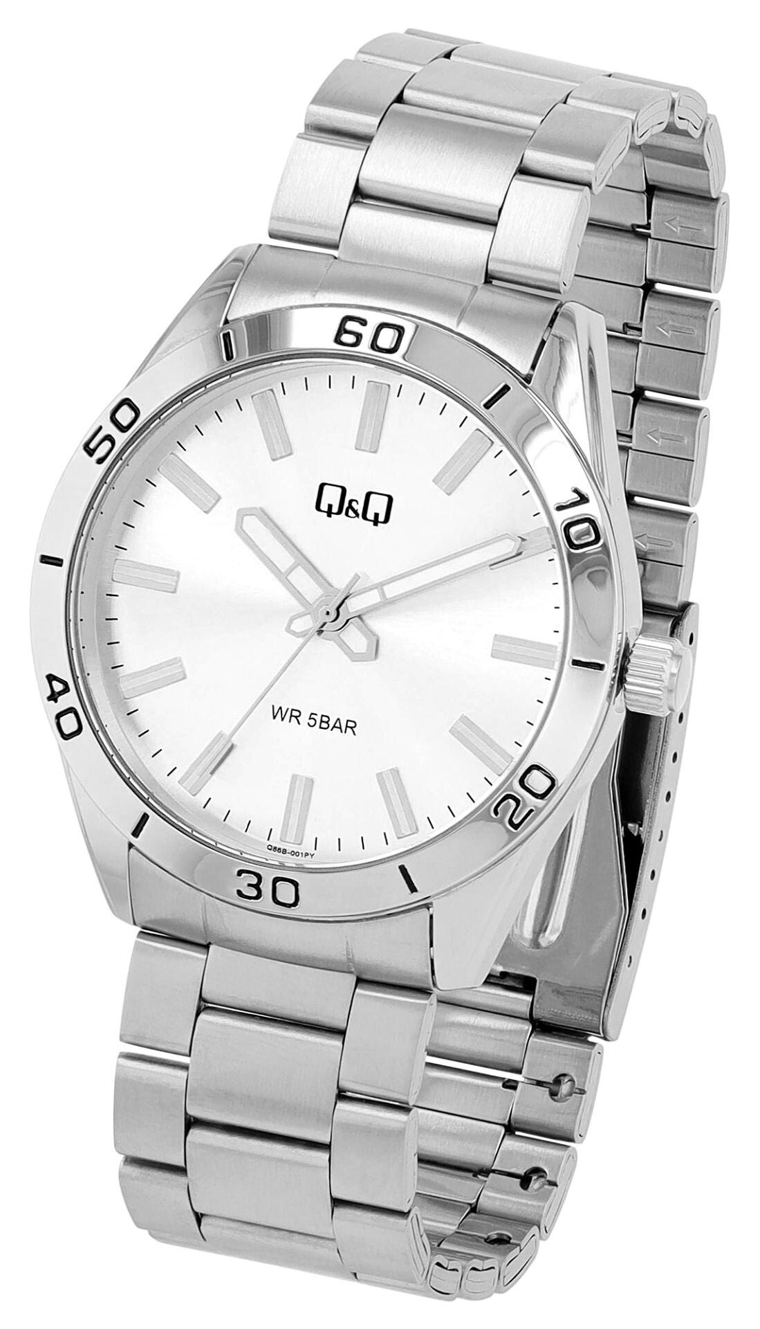 Q&Q Herrenuhr mit Edelstahlband 5 BAR, silberfarben Q86B-001PY