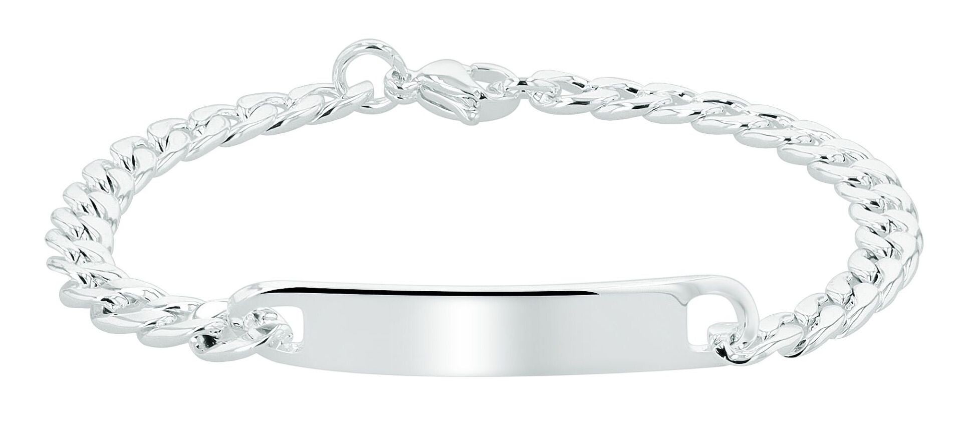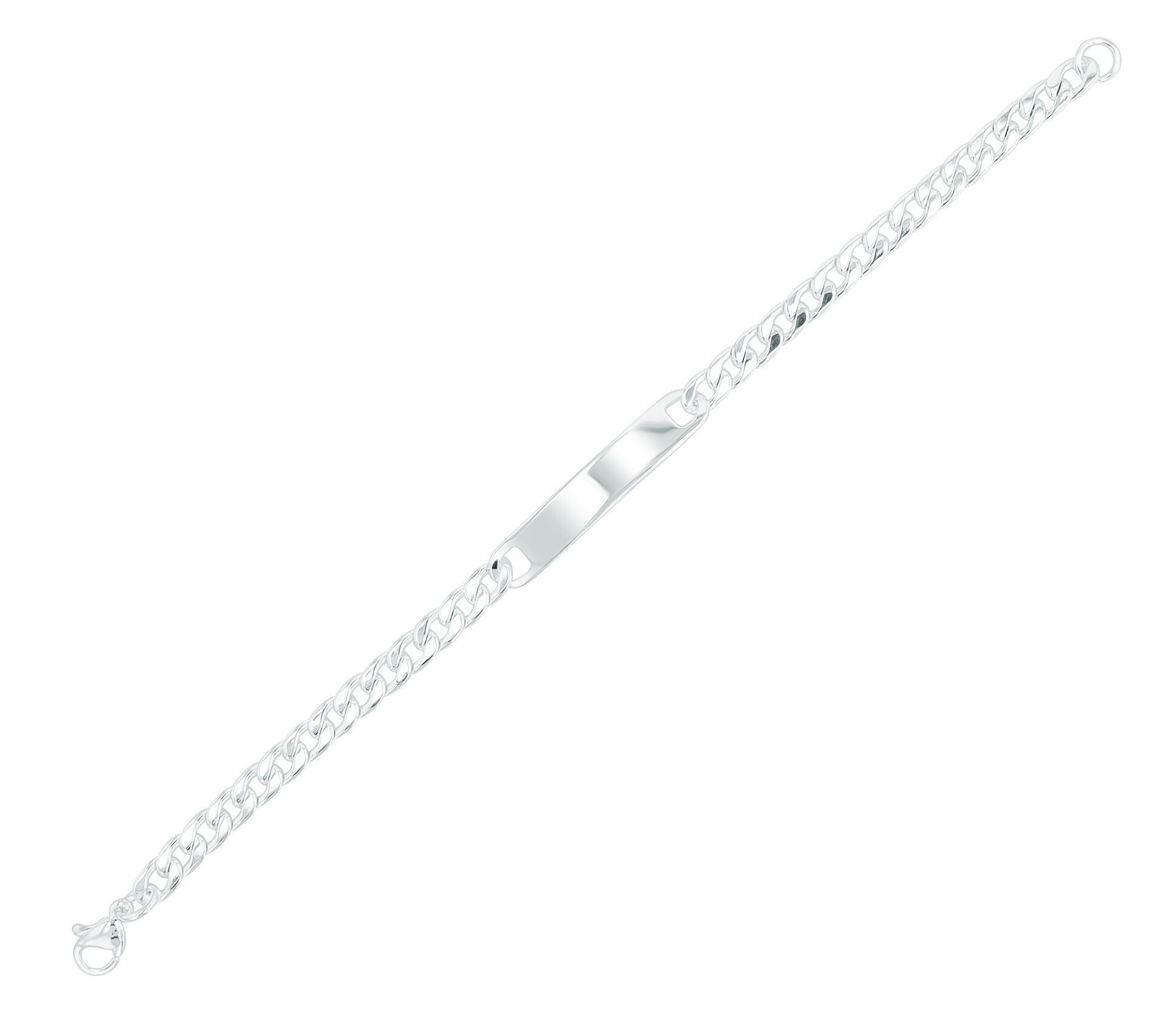 "Lavini" Panzerarmband aus Edelstahl, Gravurplatte, 18 cm, versilbert