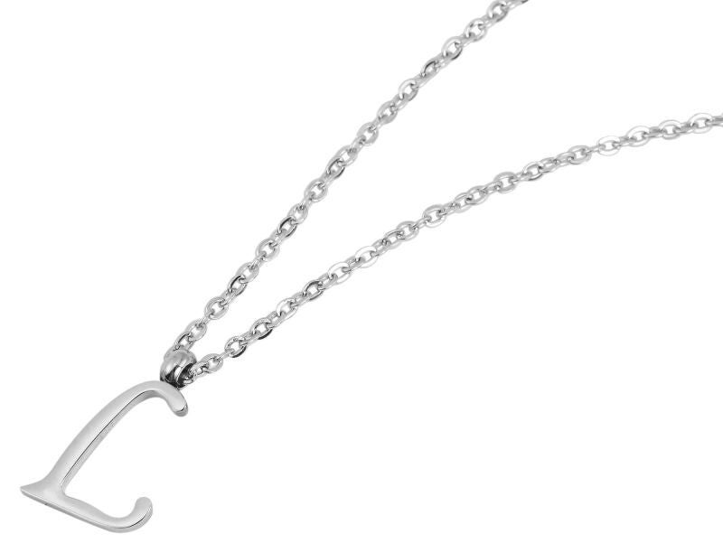 "Kiah", Akzent Ankerkette Edelstahl, silberfarben, Buchstabenanhänger L, 43 cm