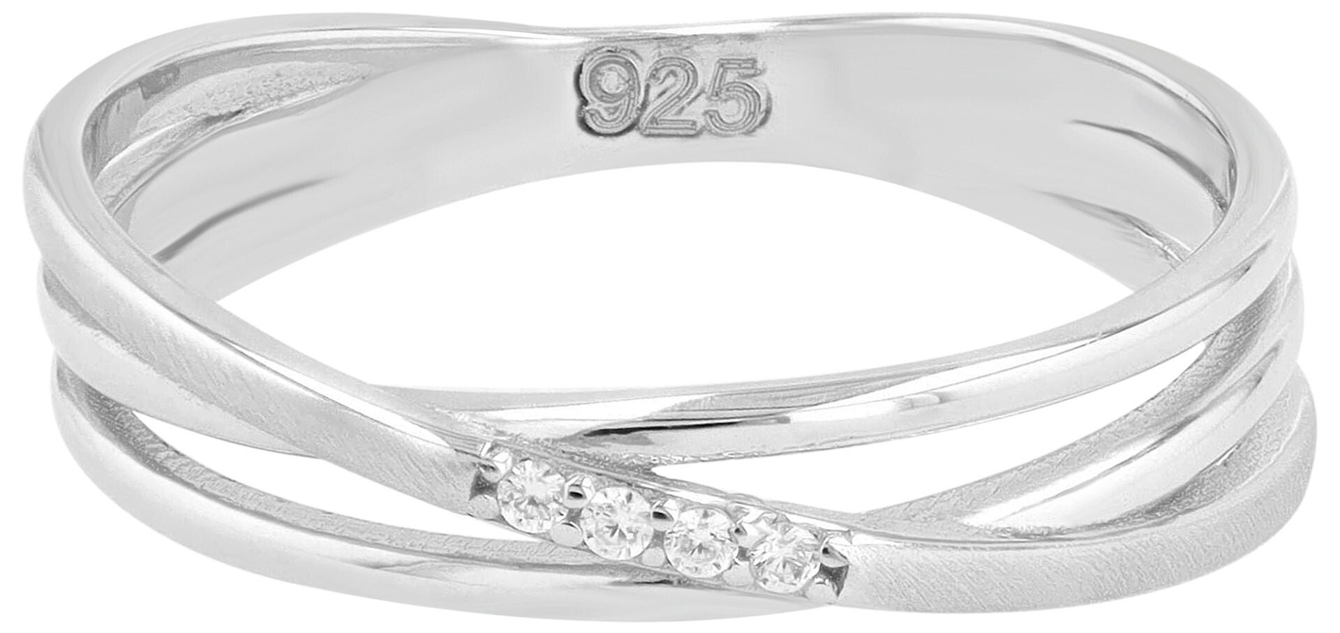 Akzent Damenring "Amy" 925 Sterling Silber – Dreireihige Eleganz mit funkelndem Zirkonia