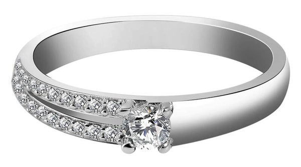 Im Zentrum des Designs steht ein facettenreich geschliffener Zirkonia, der in einer klassischen Krappenfassung gehalten wird und als strahlender Mittelpunkt alle Blicke auf sich zieht. Diese Kombination aus seitlichem Steinbesatz und zentralem Highlight verleiht dem Ringdesign eine besonders luxuriöse Ausstrahlung.