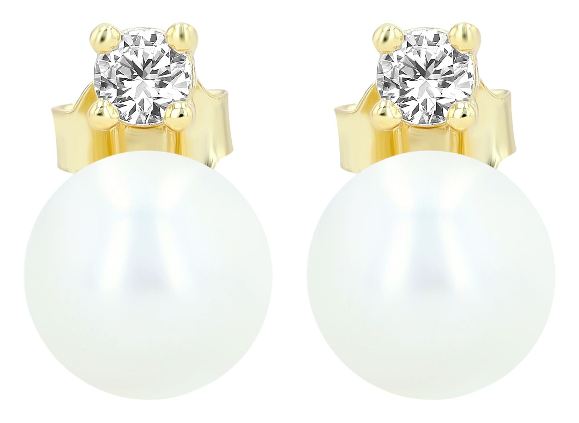 "Almi" 925/- Echt Silber Ohrstecker, echte Süßwasserperle Ø 8 mm/ Zirkonia, vergoldet 5300626-002