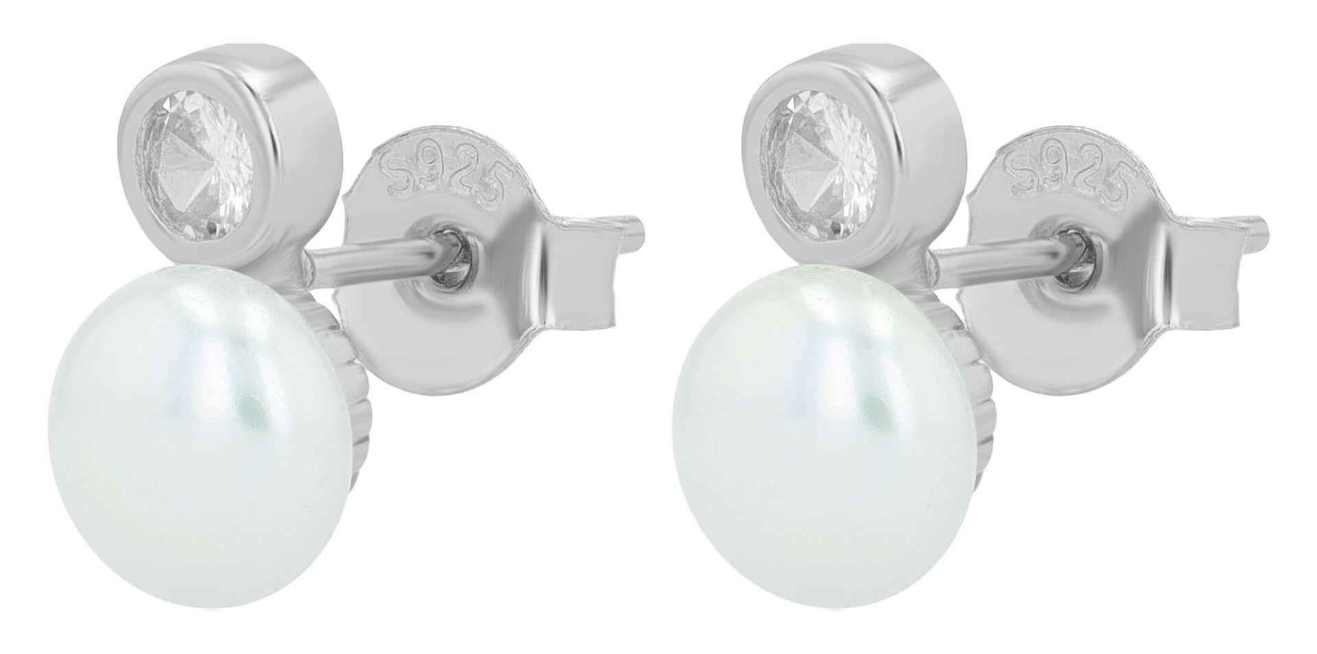 "Arbi" 925/- Echt Silber Ohrstecker, echte Süßwasserperle Ø 6 mm, Zirkonia, rhodiniert 5300623-001