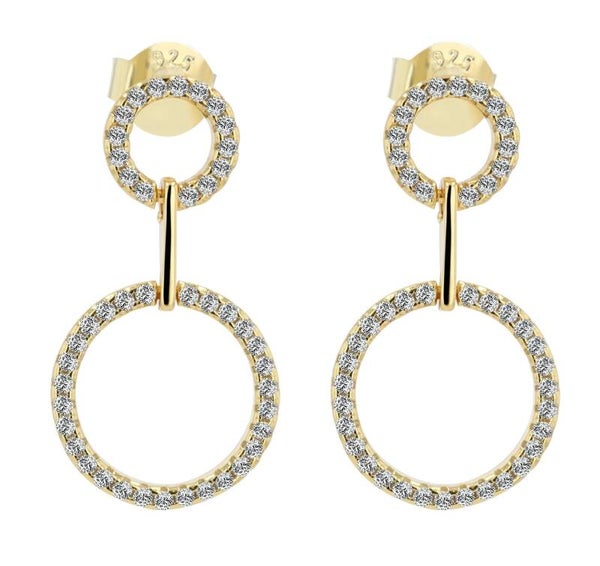 Das raffinierte Design mit zwei offenen, miteinander verbundenen Kreisen sorgt für eine moderne und zugleich zeitlose Optik. Der obere Kreis mit 7 mm Durchmesser ist mit funkelnden Zirkonia-Steinen besetzt, während der größere untere Kreis mit 12 mm Durchmesser durch eine Vielzahl strahlender Zirkonia eine beeindruckende Brillanz entfaltet. Die bewegliche Verbindung erzeugt eine elegante Dynamik und unterstreicht die feminine Leichtigkeit dieser Ohrhänger.