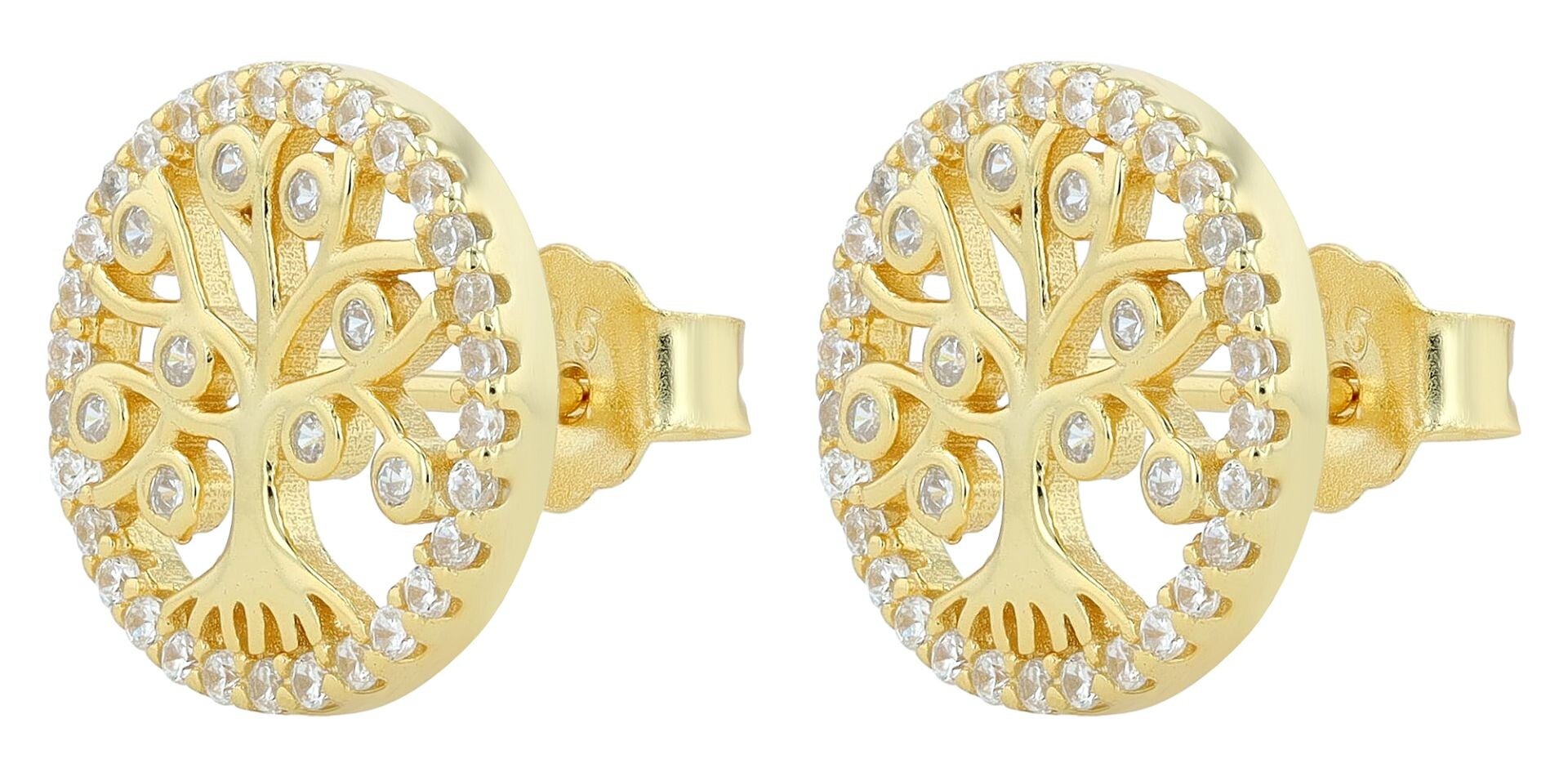Akzent Damen Ohrstecker „Luna“ – 925er Silber vergoldet mit Lebensbaum & Zirkonia