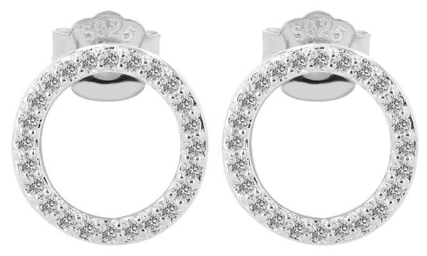 "Maresa" - 925/- Echt Silber, Ohrstecker, Runde offene Form Ø 11mm, silberfarben rhodiniert mit weißen Zirkonen 5300414-002