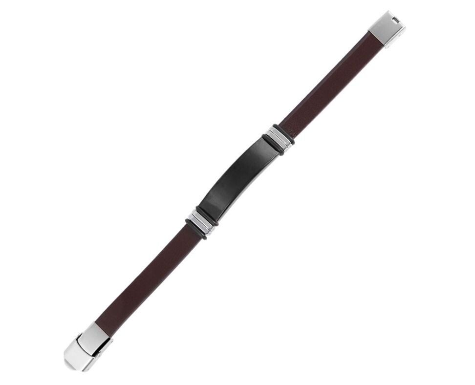 "Lenn", Akzent Echtlederarmband mit Edelstahlgravurplatte, dunkelbraun/schwarz 5040122-002