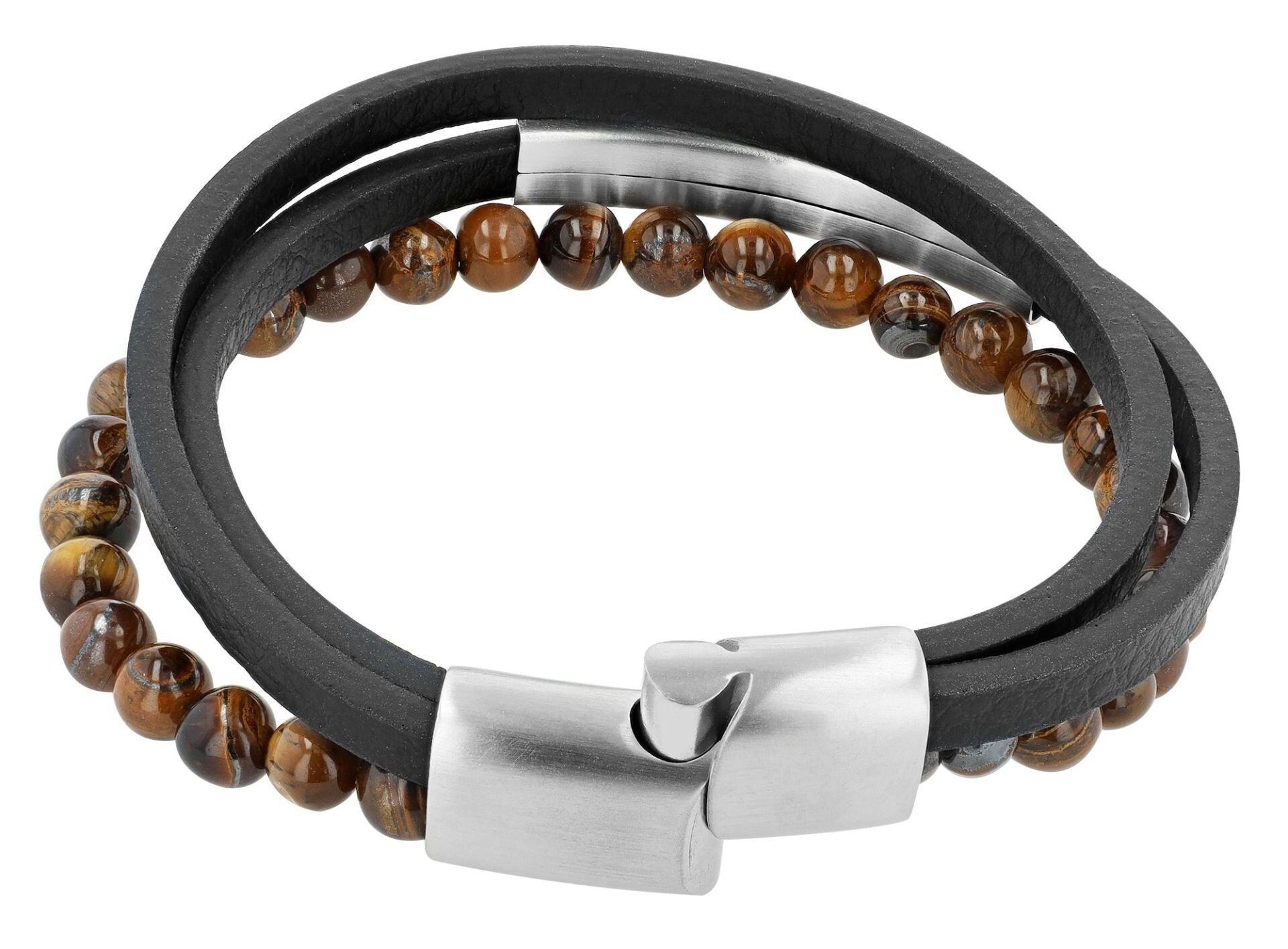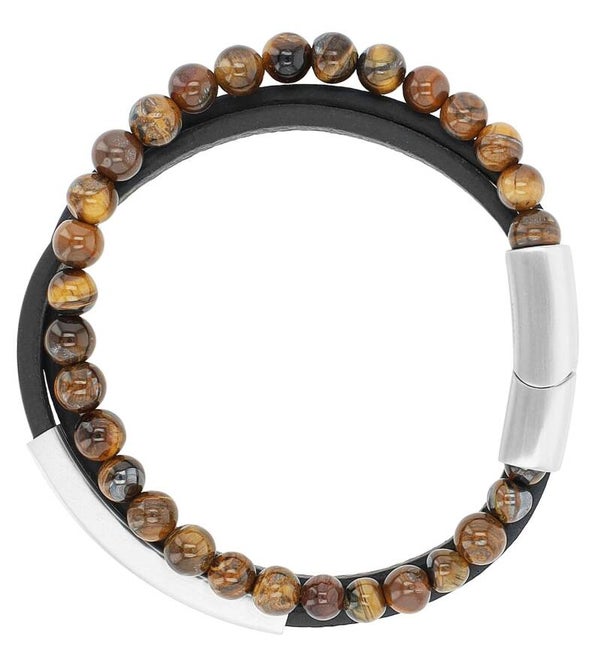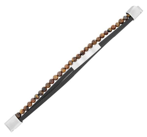 Akzent Armband aus Echtleder und Tigerauge, Gravurplatte, Schwarz/ Braun 5040320-001