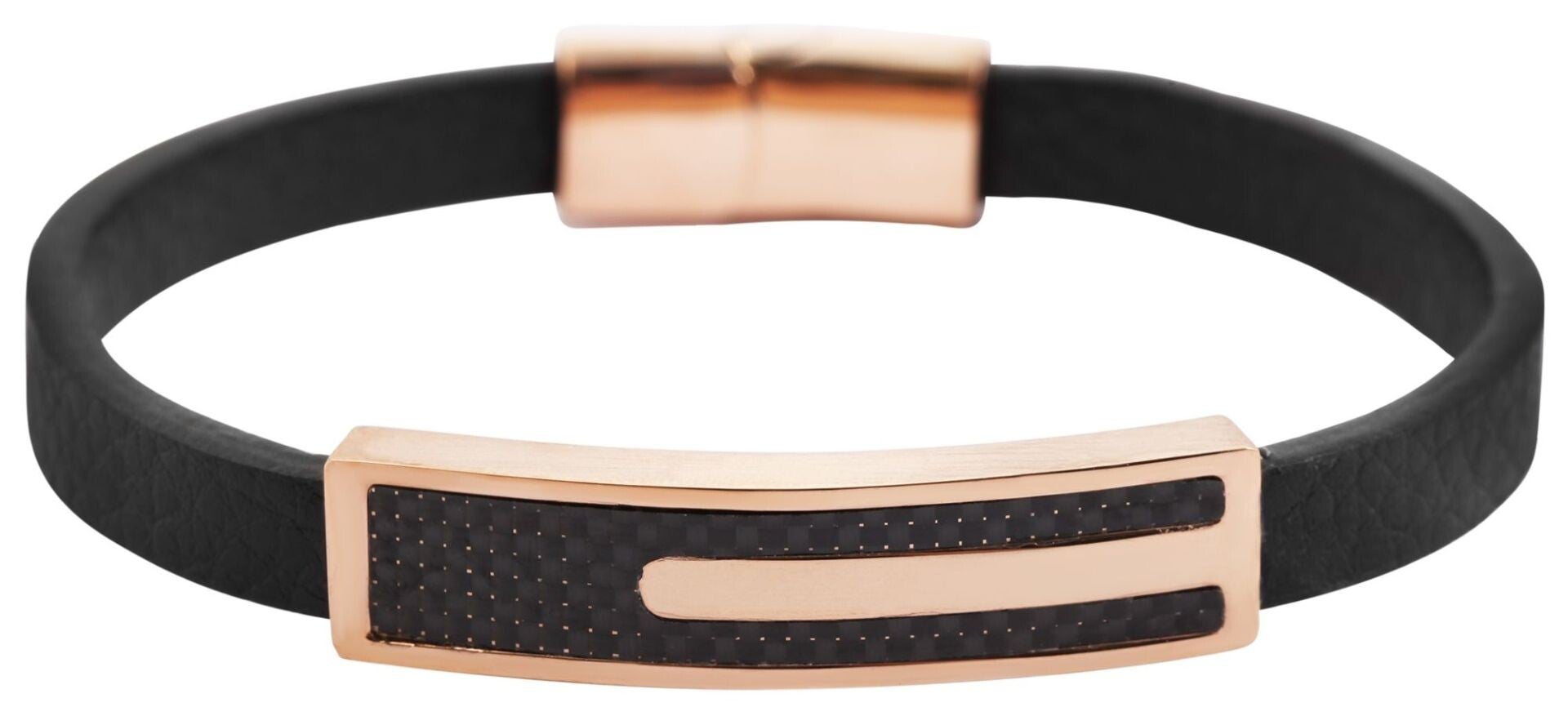 Akzent Armband aus Echtleder mit ionenplattierter Edelstahl-Gravurplatte – Schwarz/Roségoldfarben
