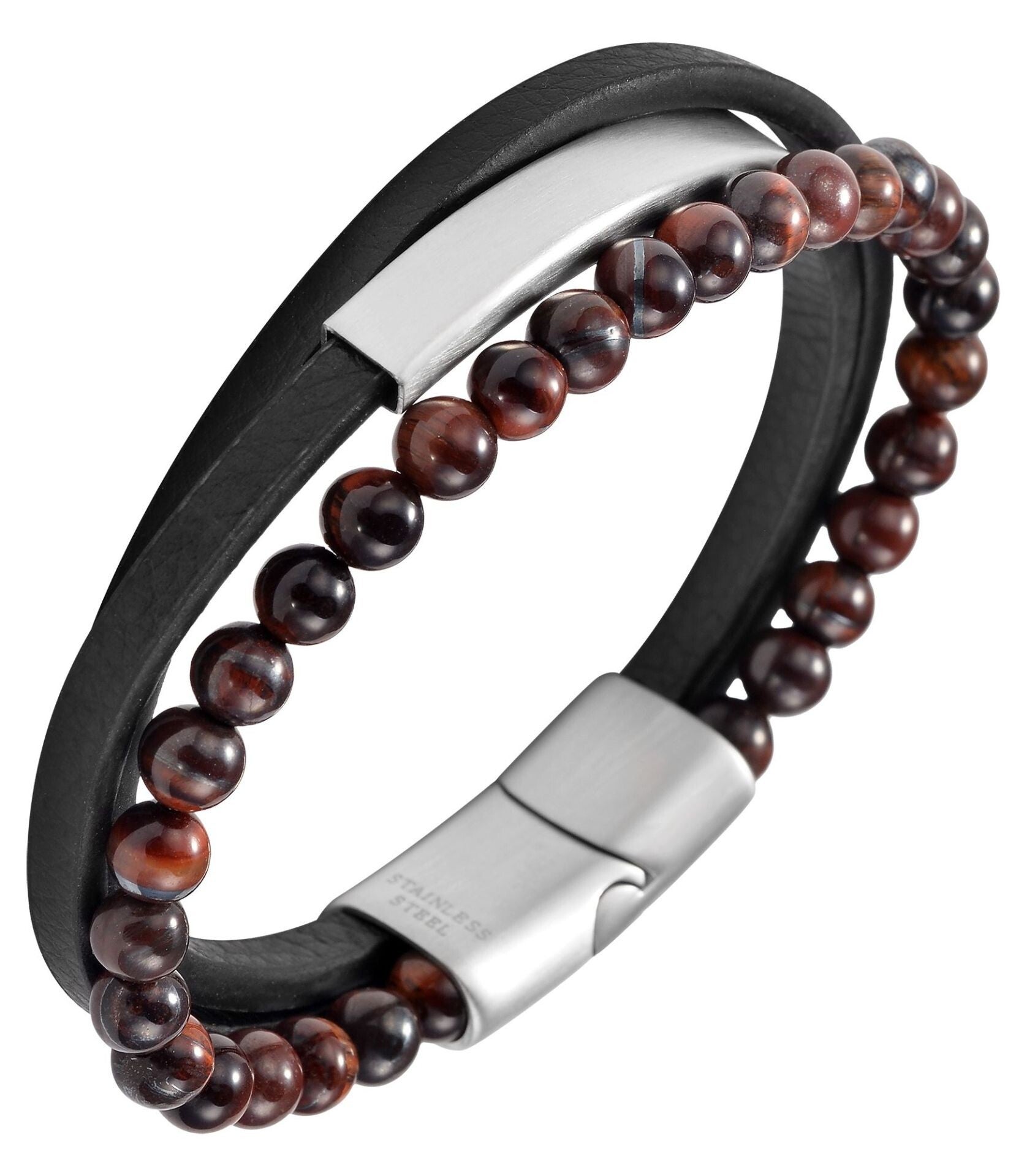 Akzent Armband Eliya – Stilvolles Lederarmband mit Tigerauge und Gravurplatte
