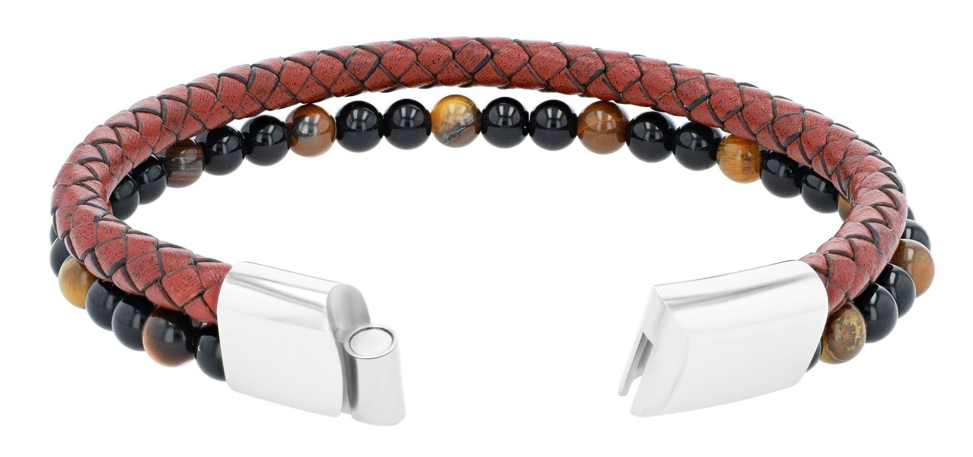 Die Kombination aus hochwertigem Echtleder, Naturstein und Edelstahl sorgt für einen stilvollen und zugleich robusten Look. Der praktische Edelstahl Magnetverschluss ermöglicht ein einfaches und sicheres Anlegen des Armbands. Zusätzlich sorgt das mitgelieferte Verlängerungselement dafür, dass sich die Länge flexibel anpassen lässt und optimalen Tragekomfort bietet.