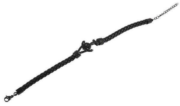 Akzent Echtlederarmband mit Edelstahlelement Anker, schwarz/schwarz 5040161-001