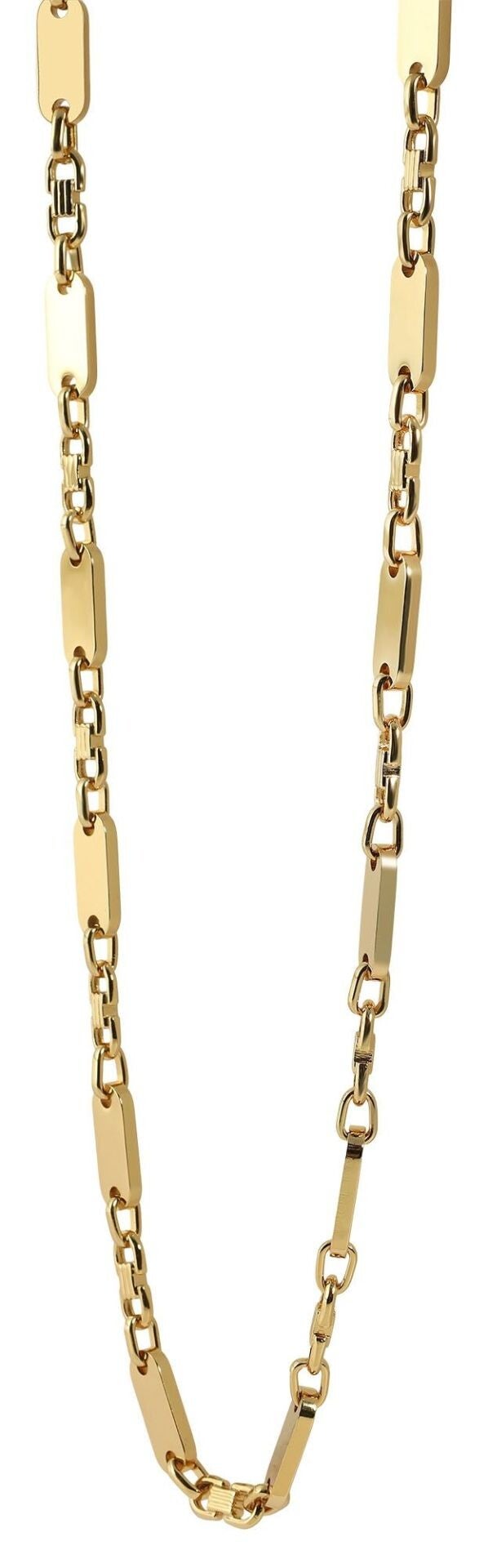 Die Akzent Plattenkette Bene verleiht jedem Outfit modernen Glanz und kraftvollen Charakter. Gefertigt aus hochwertigem Edelstahl in goldfarbener Ausführung, ist diese Unisex-Kette sowohl für Damen als auch Herren geeignet. Die Kombination aus Gravurplatten und strukturierten Elementen sorgt für eine beeindruckende Optik, während jede Platte mit den Maßen 15 x 6 mm ausreichend Platz für eine individuelle Gravur bietet, die das Schmuckstück zu einem persönlichen Highlight macht.