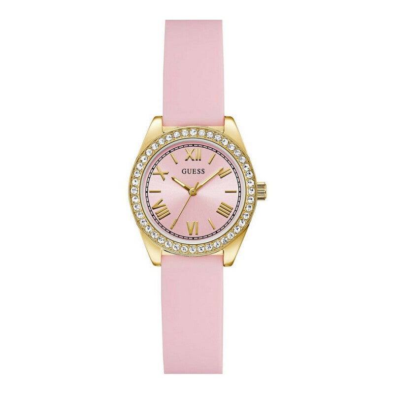 #Damenuhr, #GuessUhr, #GoldPink, #Silikonarmband, #Quarzuhr, #Damenschmuck, #GlitzerDesign, #TrendStyle
